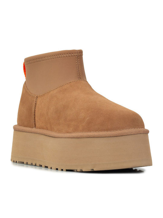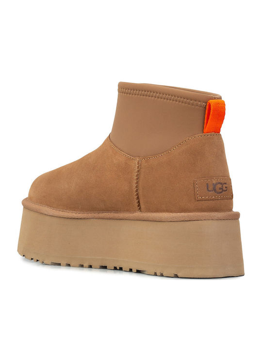 Ugg Australia Classic Mini Dipper Δερμάτινα Γυναικεία Μποτάκια Chestnut