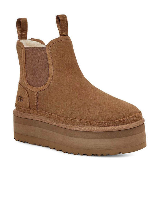 Ugg AustraliaNeumel Δερμάτινα Γυναικεία Chelsea Μποτάκια με Μεσαίο Τακούνι Camel