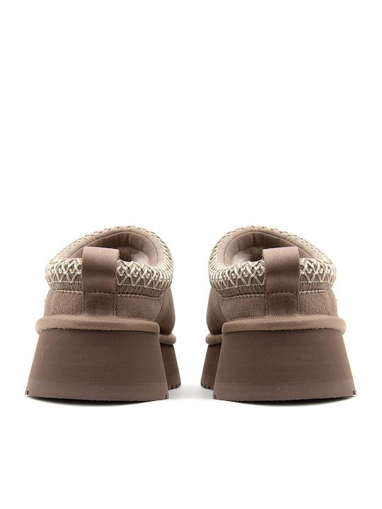 Ugg AustraliaTazz II Κλειστές Δερμάτινες Γυναικείες Παντόφλες Μπεζ / Πούρο Regular Fit